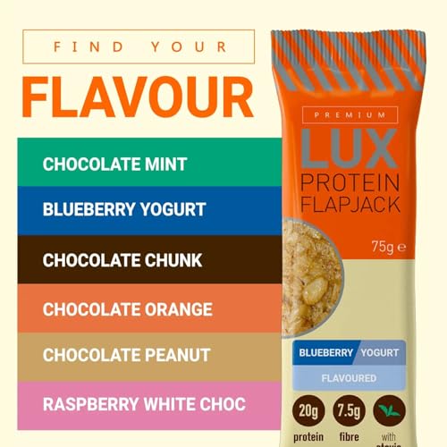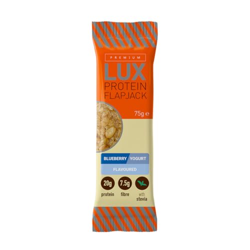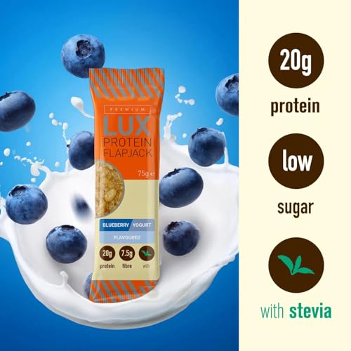 - At amazon.co.uk you can purchase Premium LUX Protein Flapjack Bars - High Protein, Low Sugar Snack – Bodybuilding Warehouse - Blueberry Yogurt (24 x 75g) for only £19.99