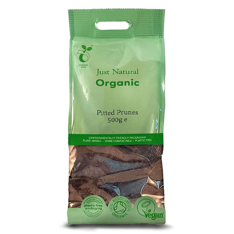 a source of fibre iron vitamin b6 and potassium dietary digestive support excellent for use in baking cooking or as an onthego snack certified organic by the soil association 100 plastic free compostable packaging dried plums otherwise known as prunes are exceptionally nutritious delicious and versatile you can add prunes to porridge baked goods juices smoothies and salads or enjoy them as a snack straight from the bag prunes are an excellent source of iron for normal energyyielding metabolism potassium for the normal function of the nervous system and vitamin b6 for normal psychological function and given their high dietary fibre content prunes are also often recommended for digestion and gut health just natural organic pitted prunes are sourced from only the best organic producers around the world and theyre packed in a 100 recyclable pouch our pitted prunes are suitable for vegetarians and vegans want to find out more about our pitted prunes or anything else in our whole foods range…