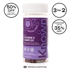 Support your child’s health with Known Nutrition’s Kids Vitamin C Complex Gummies! These delicious Blackcurrant-flavoured gummies blend 5 essential vitamins and minerals to support immunity, cellular health, energy, and more. With Vitamin C, B6, B12, Zinc, and Selenium, our sugar-free and vegan formula is perfect for kids!