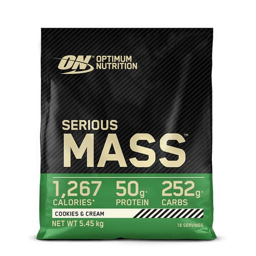 - At amazon.co.uk you can purchase Optimum Nutrition Serious Mass Protein Powder High Calorie Mass Gainer with Vitamins, Creatine and Glutamine, Cookies and Cream, 16 Servings, 5.45 kg, Packaging May Vary for only £48.98 , which is 17% less than the cost in Optimum Nutrition UK (£58.99).