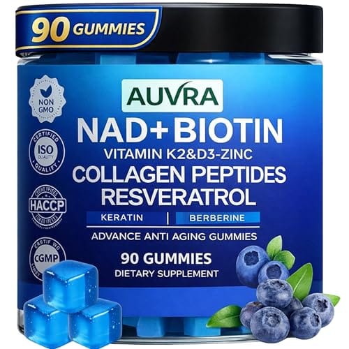 - At amazon.co.uk you can purchase Sugar-Free NAD+ Biotin Gummies 90 Count, High Strength with Collagen, Zinc, Vitamin D3 & K2, Resveratrol | Vegan, Cellular Energy & Anti-Aging Support (45 Servings) for only £18.99