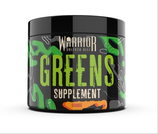 Warrior Greens – 30 Servings (1 Month Supply) Warrior Greens is a tasty and potent blend of powerful Superfoods Greens supplementation has become increasingly popular over the last few years, with athletes from sports as diverse Mixed Martial Arts, Crossfit, Bodybuilding, Rugby, Cycling and more adding them to their personal nutrition plan. Warrior Greens is a powerful and comprehensive Greens Superfood formula, that includes several sources of the most popular Greens nutrients, blended together and flavoured to be tasty and incredibly drinkable. Most Greens formulas taste like grass… Warrior Greens on the other hand, is easy to drink and enjoyable. What’s included in Warrior Greens? Spinach Kale Wheat Grass Broccoli Spirulina Chlorella Alfalfa Powder Barley Grass Moringa Leaf Powder We left nothing to chance with Warrior Greens – we’ve included the highest quality ingredients available. Ingredients like Spirulina, Broccoli, Kale and more. Powerful natural ingredients, of the highest possible quality, just like every supplement from Warrior! Why choose Warrior Greens over other Greens formulas on the market? 1 full month supply in every tub Naturally sweetened with Stevia A light, refreshing natural Orange flavour Complete and Comprehensive Most Greens formulas taste terrible – this isn’t an exageration… We know several athletes who’ve started taking a greens supplement and stopped even when they were seeing benefits, because the taste was so bad. Not so with Warrior Greens! We’ve naturally sweetened Warrior Greens with Stevia, and added a light, refreshing natural orange flavour to ensure you enjoy your greens as well as benefit from them!We chose Stevia because it has Nutritional Facts Directions Mix one serving of Warrior Greens with 50ml -150ml of cold water, shake and consume immediately. For best results, consume one serving daily with food. The amount of water used will not effect the active ingredients and is purely for intensity of flavour. Serving Information Serving Size: 5g (one scoop) Servings per container: 30 servings Ingredients Warrior GREENS powder 4,440mg (Wheat Grass Powder (Gluten Free), Spirulina Powder, Chlorella Powder, Broccoli Powder, Moringa Oleifera Leaf Powder, Barley Grass Powder, Alfalfa Powder, Spinach Leaf Powder, Kale Leaf Powder) Flavours, Sweetener (Stevia). Manufactured using equipment that processes products containing Milk, Soy, Egg, Gluten, Nuts and Peanuts For Allergens, please see ingredients in bold. Advisory Intended for use by healthy adults, over the age of 18. Prior to use, please seek advice from your G.P if you are unaware of your current health condition, have a pre-existing medical condition, are taking prescription medication, are pregnant or planning to become pregnant or breastfeeding. Do not exceed the recommended dose. Please discontinue use or reduce dosage if you experience any adverse reactions. Use as part of a balanced and healthy lifestyle. Please store in a cool, dry place out of reach of children. Works Well With Why not stack it? The selection of great products below have been hand-picked by us, because they work well in combination with the product above. Form Powder Brand Warrior Supplements