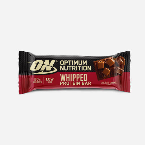 WHIPPED PROTEIN BAR – The optimum balance of High Protein and great taste The Optimum Nutrition Whipped bar is the perfect balance of high protein and great taste! A delicious, soft and whipped base is topped with layers of crispies and caramel, and enrobed in real milk chocolate coating for an unrivalled taste experience. Protein bars aren’t supposed to taste this good. New delicious, milk chocolate coating. 20g of protein per bar. High fibre and low in sugar. Free from palm oil and suitable for vegetarians Delicious high-protein, whipped Belgian chocolate bar from Optimum Nutrition to help you grow and maintain muscle